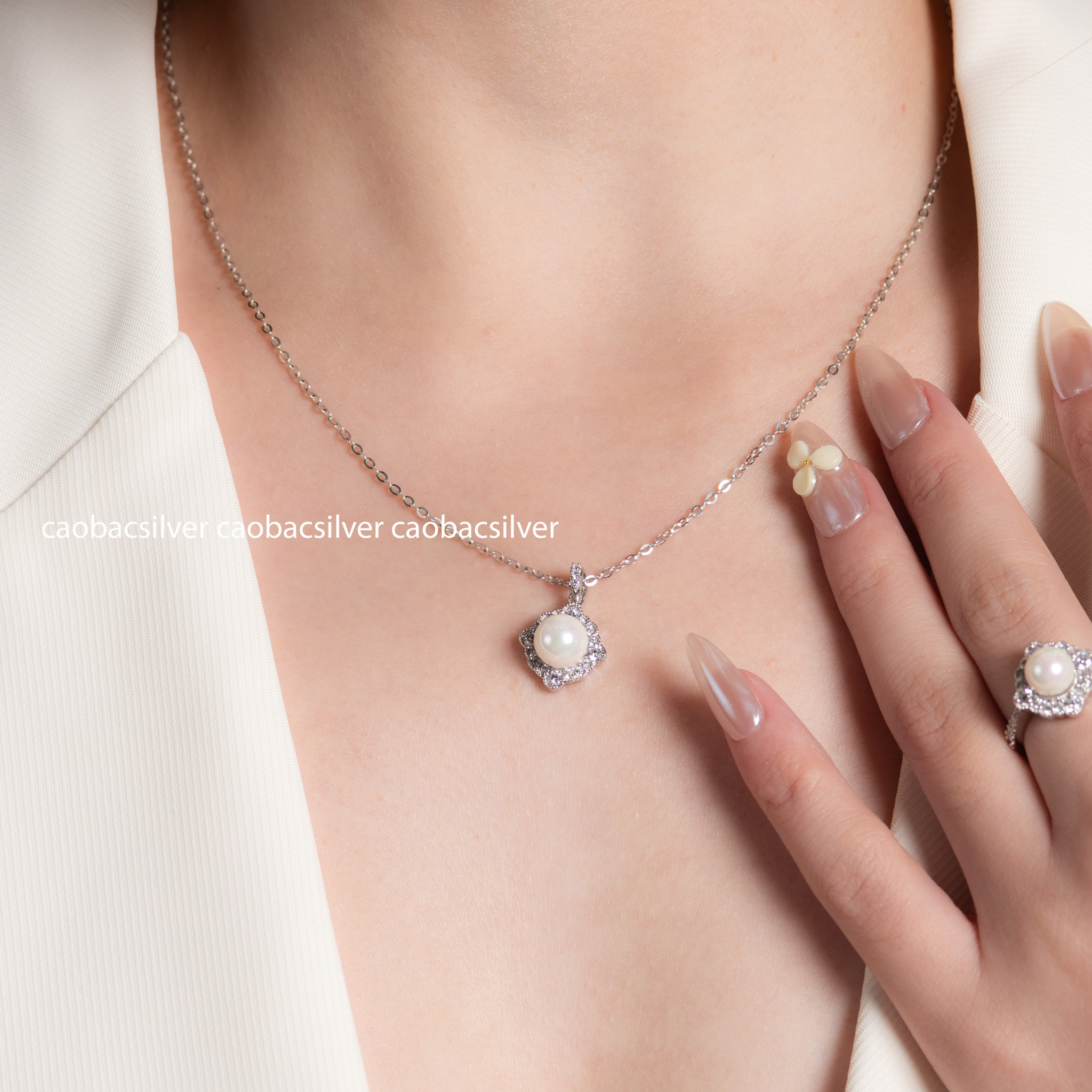 Dây chuyền bạc Việt Nam Ngọc trai Freshwater Halo Petal