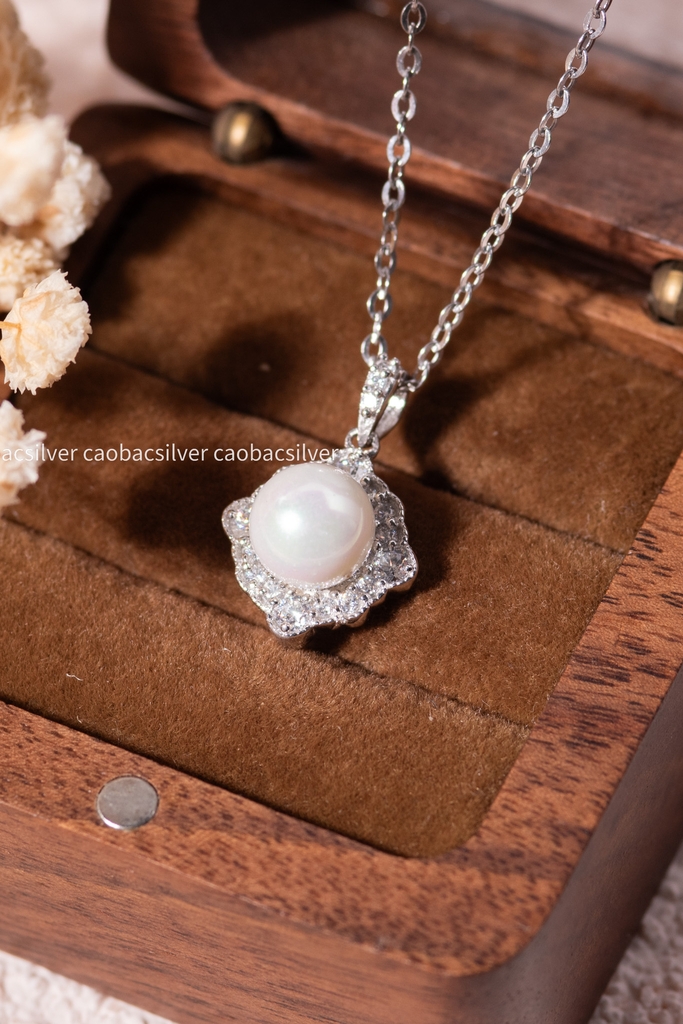 Dây chuyền bạc Việt Nam, chế tác thủ công tinh xảo, đính đá CZ cao cấp, mix cùng Ngọc Trai Nước Ngọt tự nhiên được chọn lọc kỹ lưỡng từng viên một, tuy nhiên vì là ngọc trai thiên nhiên nên vẫn có đôi chút vết sinh trưởng chứ không thể tròn đều bóng mịn 100% như hạt trai nhựa.