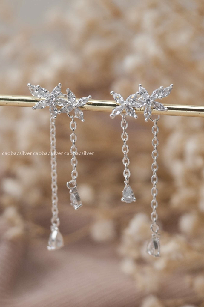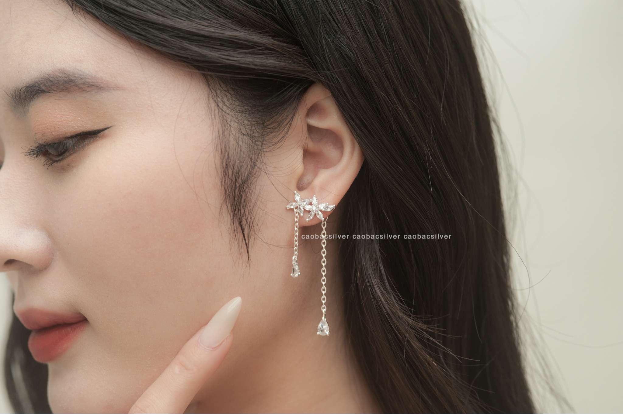 Khuyên tai bạc Việt Nam chuỗi hoa đá rơi