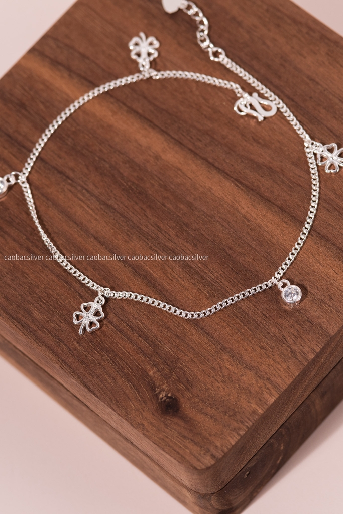 Lắc chân bạc Việt Nam chế tác thủ công theo tiêu chuẩn S925 quốc tế, đính đá CZ cao cấp.