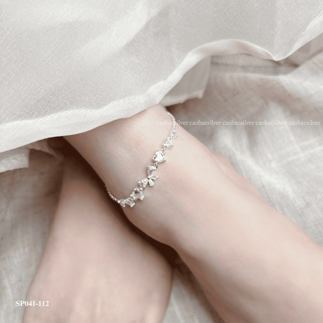 Lắc chân bạc Việt Nam chế tác thủ công theo tiêu chuẩn S925 quốc tế, đính đá CZ cao cấp.