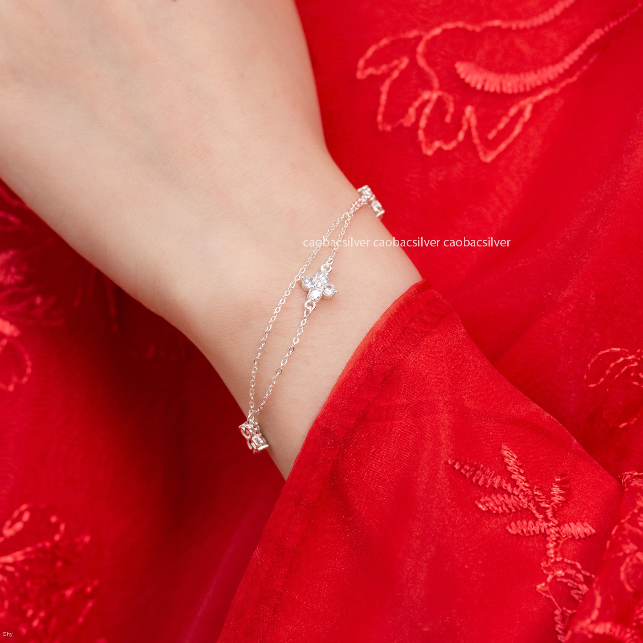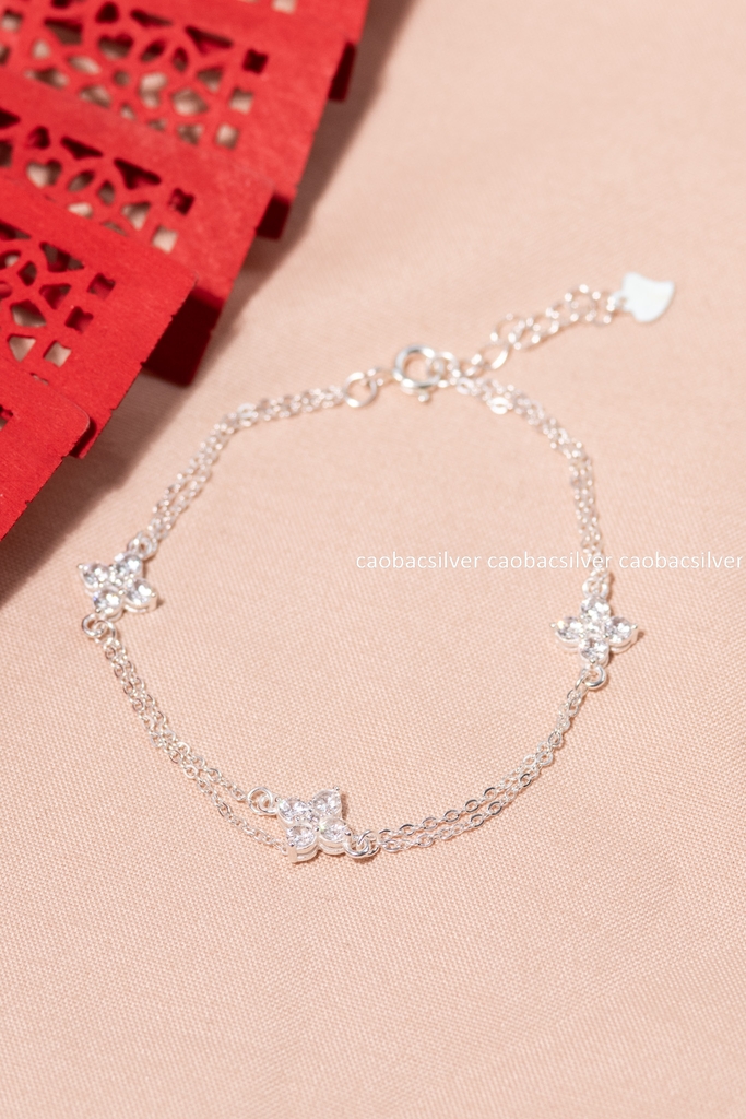 Lắc tay bạc Việt Nam hai dây hoa đá bốn cánh