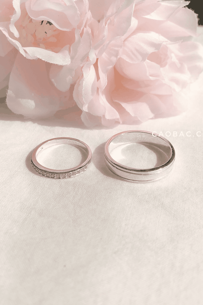 Nhẫn đôi bạc Việt Nam chế tác thủ công theo tiêu chuẩn S925 quốc tế, đính đá CZ cao cấp. Bản nhẫn dày dặn theo khuôn nhẫn cưới.