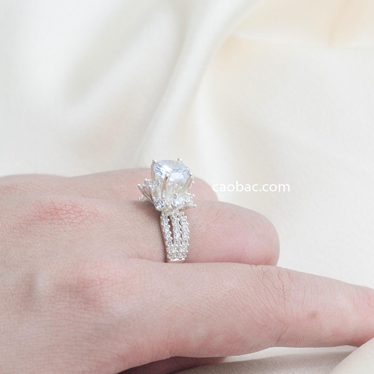 Nhẫn nữ bạc Việt Nam chế tác thủ công theo tiêu chuẩn S925 quốc tế, đính đá CZ cao cấp.