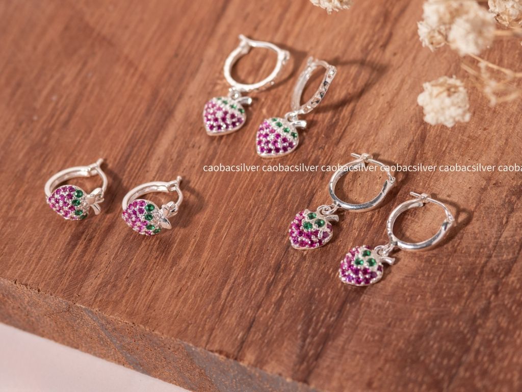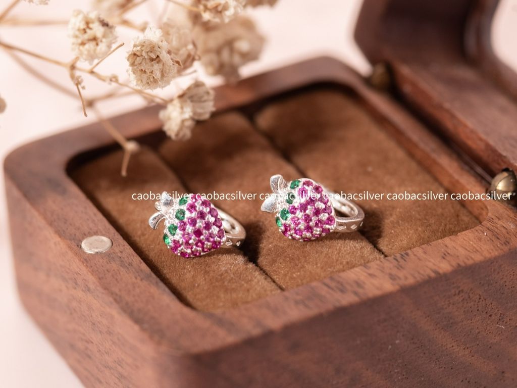 Những hình tượng quen thuộc nay được Cáo Bạc thổi hồn vào từng món trang sức nhỏ xinh. Mẫu khuyên tai charm dâu tây là điểm nhấn rạng rỡ giúp gương mặt bé thêm phần tươi tắn và đáng yêu mỗi khi xuống phố.