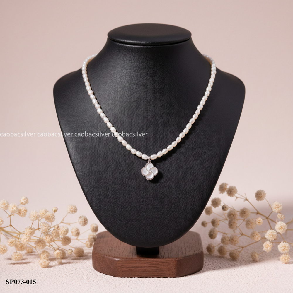 • Thông tin chi tiết: – Ngọc trai nuôi nước ngọt (Freshwater) hạt oval đều, bề mặt mịn, ánh trắng sữa tự nhiên. – Độ bóng nhẹ, ánh ngọc dịu mắt, tôn da và tạo cảm giác sang nhã. – Mặt hoa Twisty Bloom thiết kế xoắn mềm, tông trắng xà cừ tinh tế, viền bạc sáng. – Chuỗi dáng ôm cổ gọn gàng, đeo nhẹ và thoải mái. – Có thể chế tác theo size riêng của khách, kể cả cỡ bigsize.