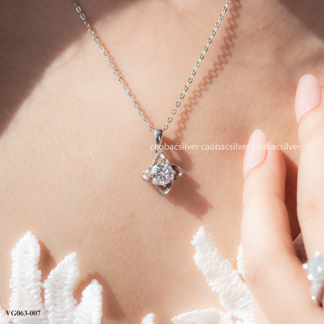 Dây chuyền bạc ta xi vàng trắng đính Kim Cương Moissanite tròn đá đều mặt phẳng