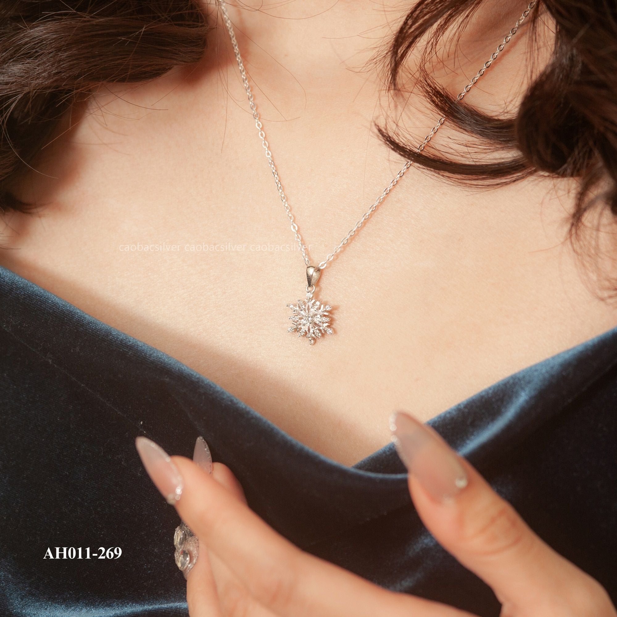 Dây chuyền bạc Việt Nam bông tuyết Giáng Sinh là món trang sức mang vẻ đẹp nhẹ nhàng, tinh khôi và đầy cảm hứng mùa đông. Thiết kế dây thanh mảnh kết hợp mặt bông tuyết nhỏ xinh được chạm khắc tỉ mỉ, thể hiện sự tinh tế và gu thẩm mỹ thanh lịch của người đeo.