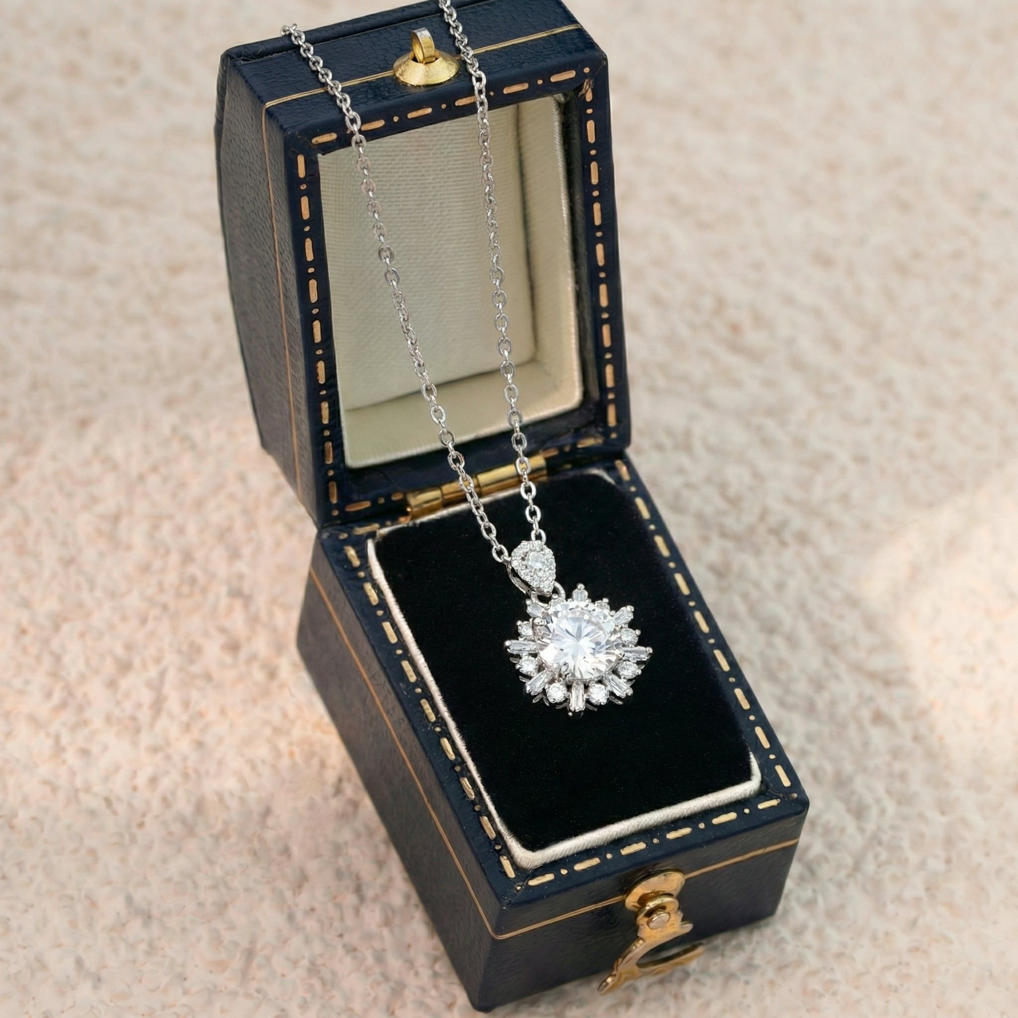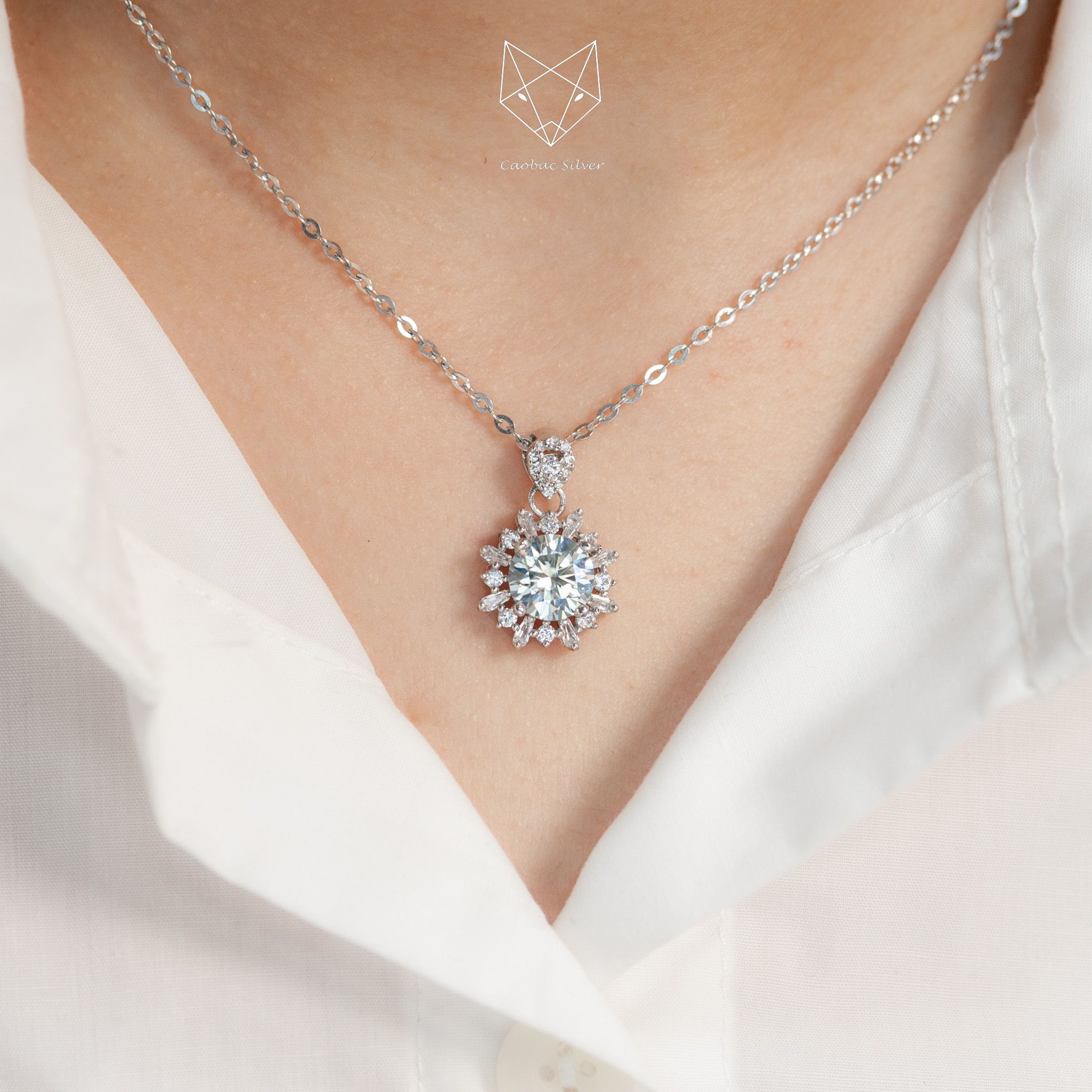 Dây chuyền bạc Việt Nam Moissanite 8 li bông tuyết đá giọt lệ gây ấn tượng mạnh với thiết kế bông tuyết sang trọng. Trung tâm là viên Kim Cương Moissanite 8 ly rực rỡ, tạo hiệu ứng ánh sáng nổi bật và thu hút ngay từ ánh nhìn đầu tiên.