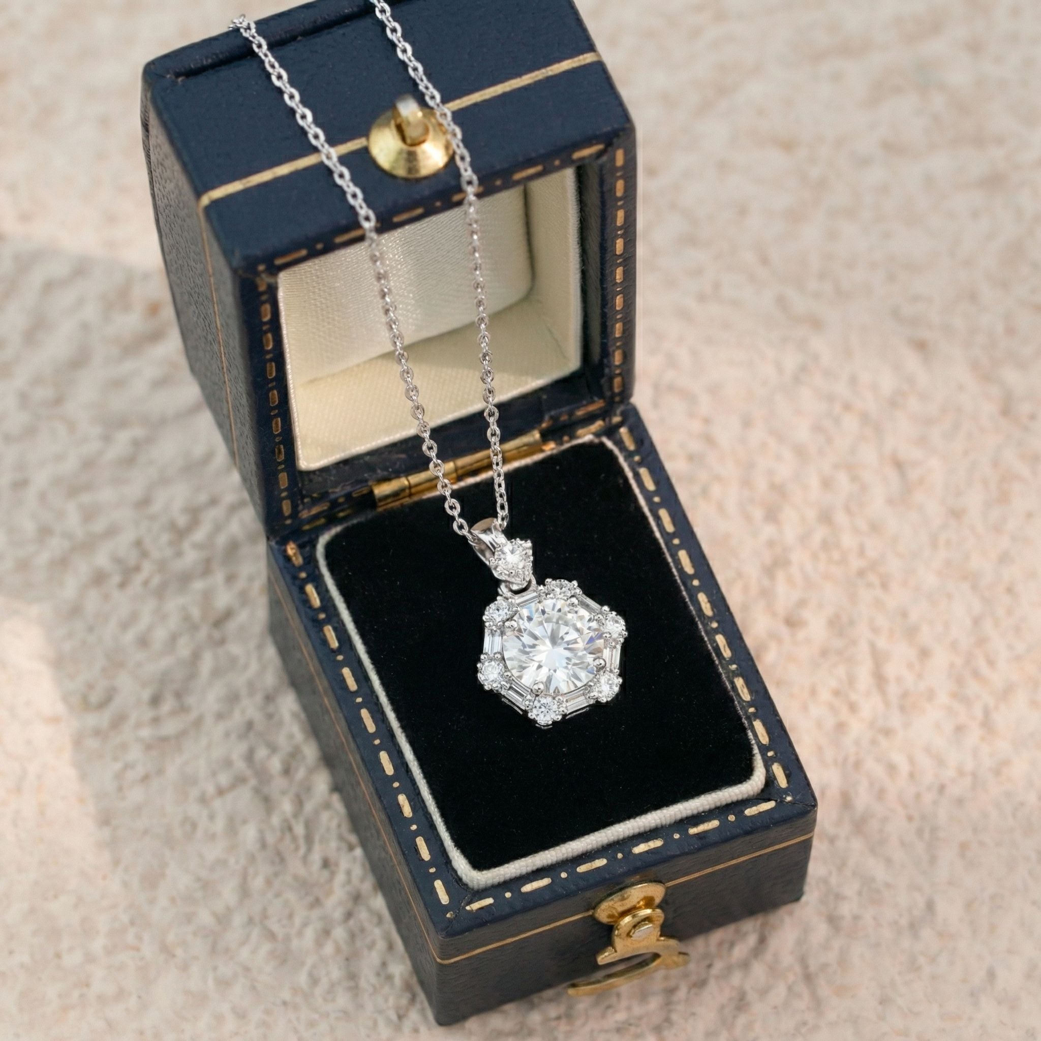 Dây chuyền bạc Việt Nam Moissanite 9 li lục giác gây ấn tượng với mặt lục giác sang trọng, nổi bật cùng viên Kim Cương Moissanite 9 li ổ đá lớn ở trung tâm. Thiết kế mạnh mẽ, hiện đại nhưng vẫn giữ được nét tinh tế và đẳng cấp.