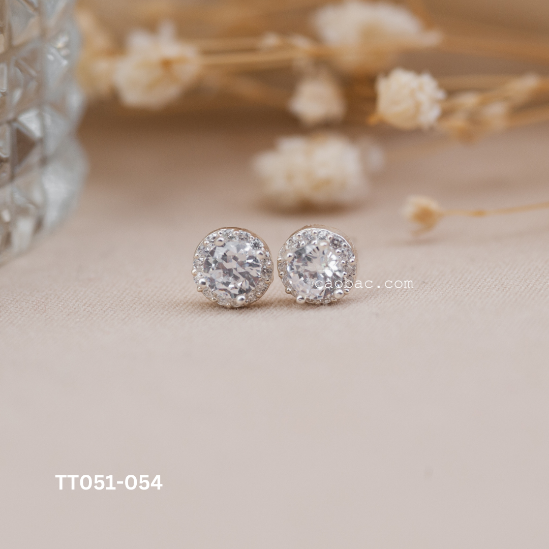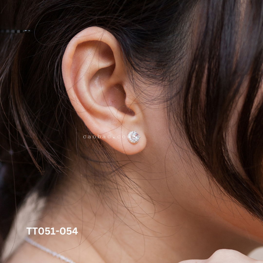 Khuyên bạc ta ổ đá tròn viền đá mini