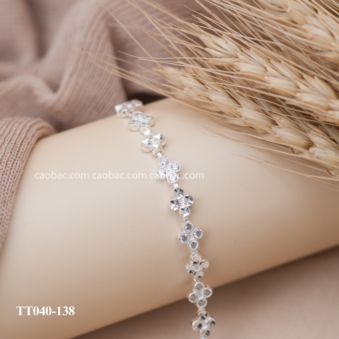 Lắc tay bạc ta họa tiết bốn lá full vòng