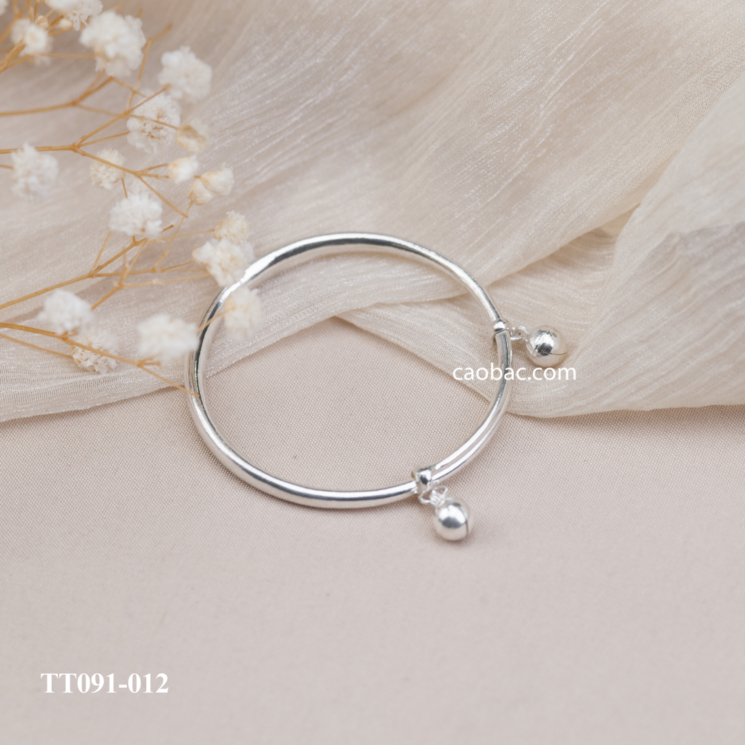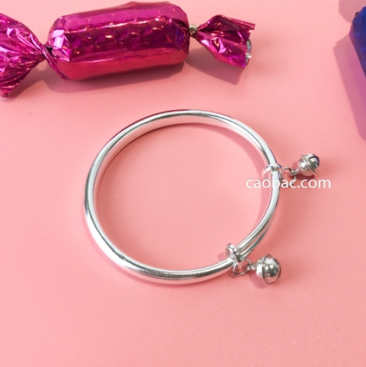 Lắc tay bạc trẻ em kiềng cứng hai chuông là mẫu trang sức truyền thống được nhiều bố mẹ lựa chọn, nổi bật với hai chiếc chuông nhỏ xinh tạo âm thanh vui tai, có thể khắc tên theo yêu cầu.