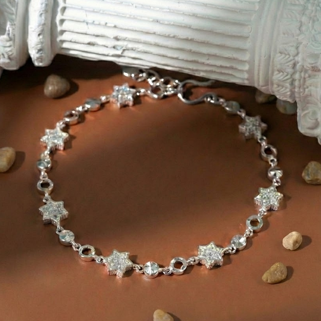Thiết kế: Chuỗi lắc thanh mảnh với họa tiết sao đính đá xen kẽ mắt tròn phay