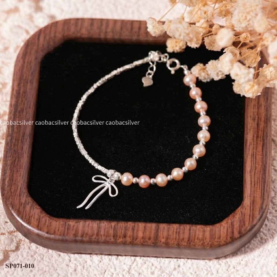 Số lượng đặt sản phẩm Lắc tay bạc Việt Nam ngọc trai Freshwater Ribbon Charm charm nơ nhỏ xinh kết hợp ngọc trai phong cách tối giản | Cáo Bạc của bạn chưa đủ để được tặng/giảm sản phẩm