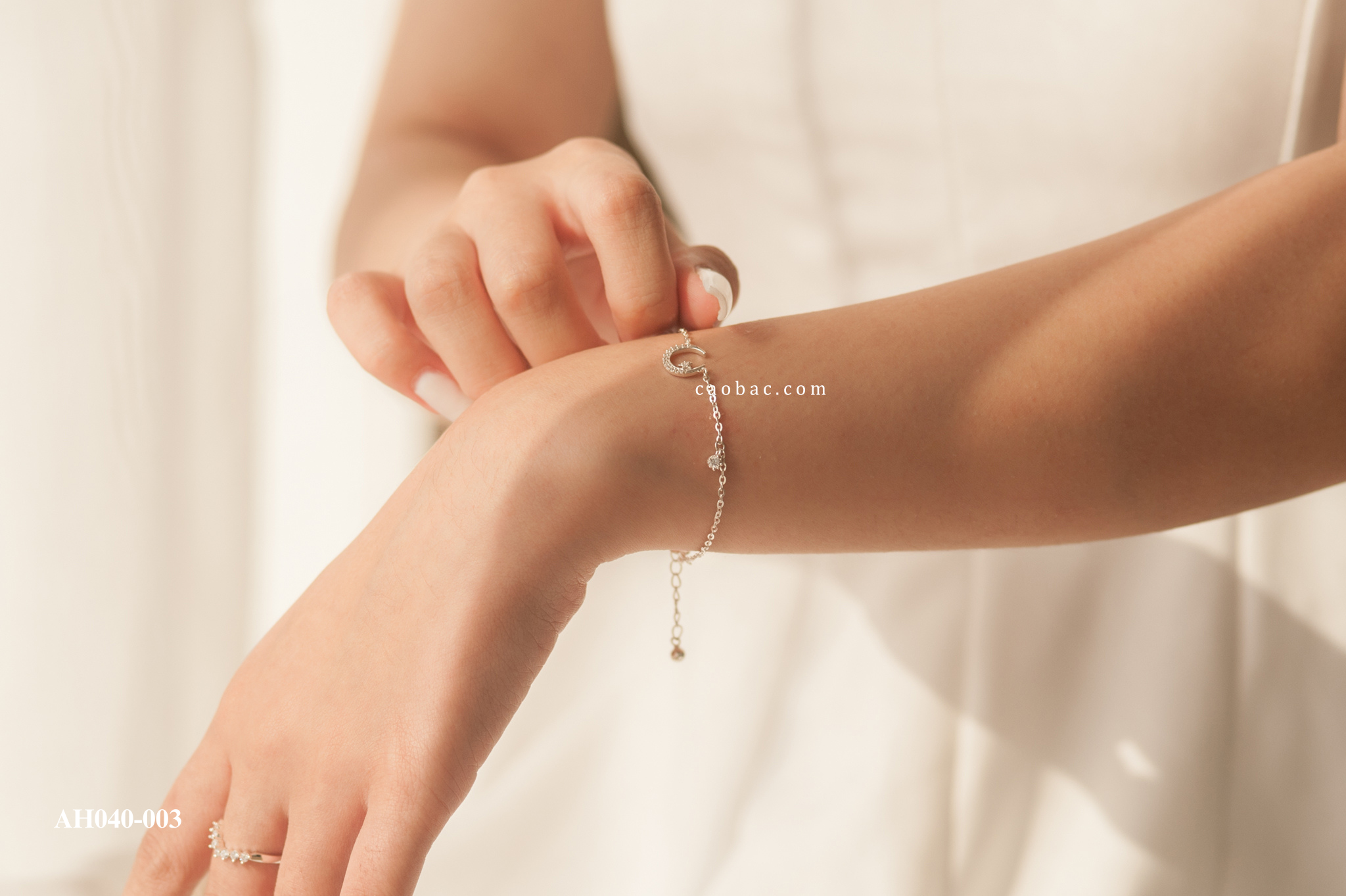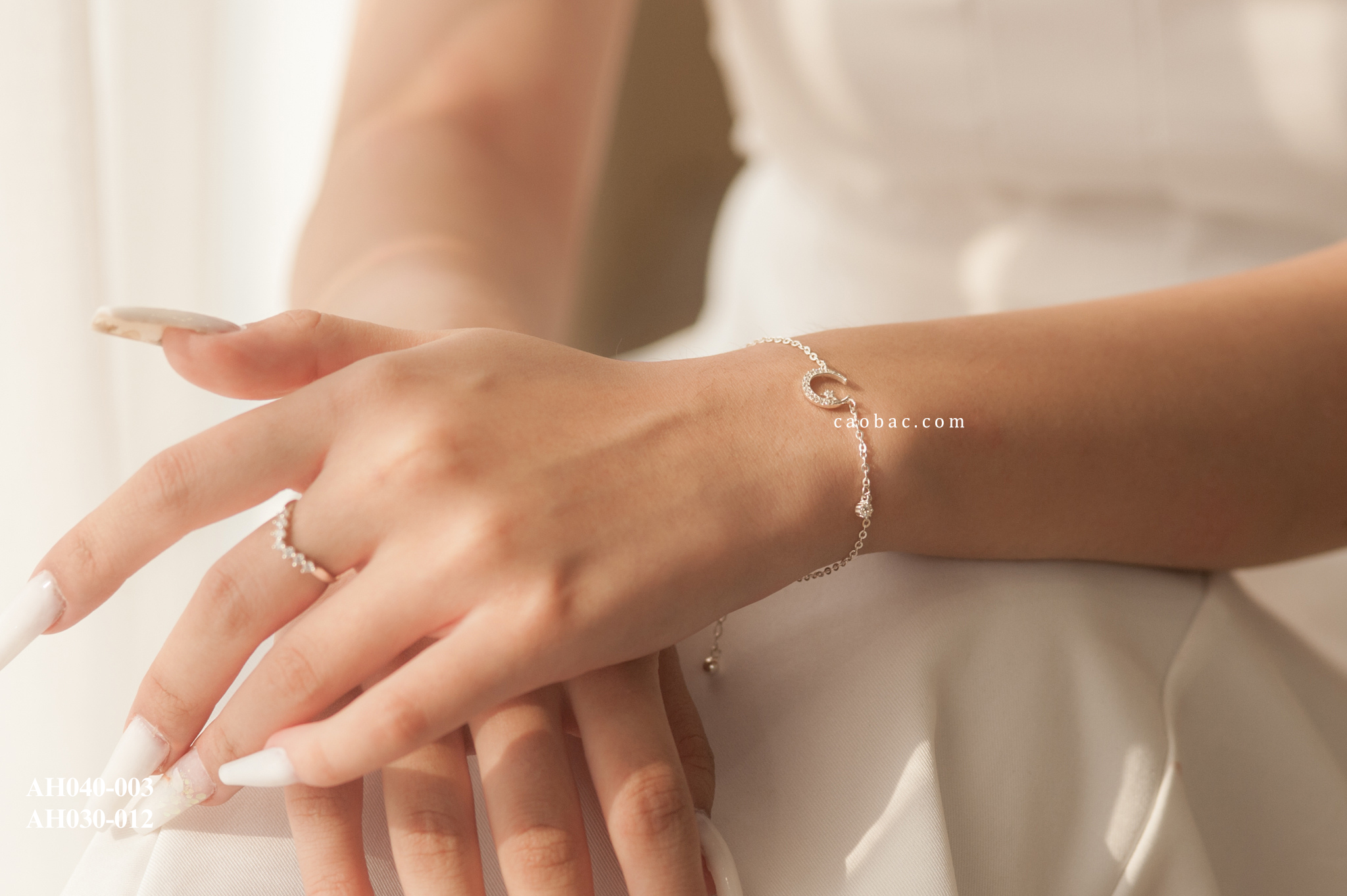• Chất liệu: Bạc Việt Nam kết hợp đá đính chắc tay • Thiết kế: Mặt trăng ôm sao nhỏ, viền đá lấp lánh tinh xảo • Form dáng: Thanh mảnh, nhẹ tay, dễ phối trang phục • Có thể chế tác theo size riêng của khách, kể cả cỡ bigsize