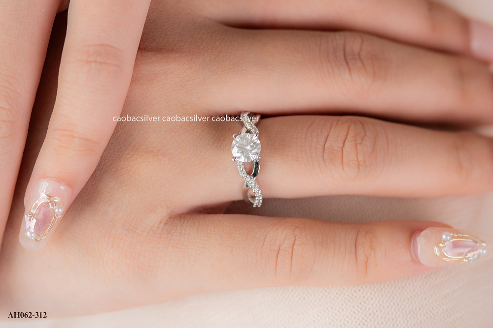 • Thiết kế & chi tiết: – Viên chủ Moissanite cắt tròn lấp lánh, đặt trên ổ 6 chấu cao chắc chắn, giúp hắt sáng mạnh và làm viên đá trông nổi, “to mắt”. – Thiết kế Infinity (∞): thân nhẫn tạo hình vô cực ôm lấy viên chủ; một nhánh trơn uốn lượn mềm mại, nhánh còn lại đính đá tấm li ti chạy dọc vai, tăng độ lấp lánh ở mọi góc nhìn. – Phom bản vừa, gầm thoáng; đeo cả ngày vẫn thoải mái, ít vướng khi sinh hoạt. – Có thể chế tác theo size riêng của khách, kể cả cỡ bigsize.